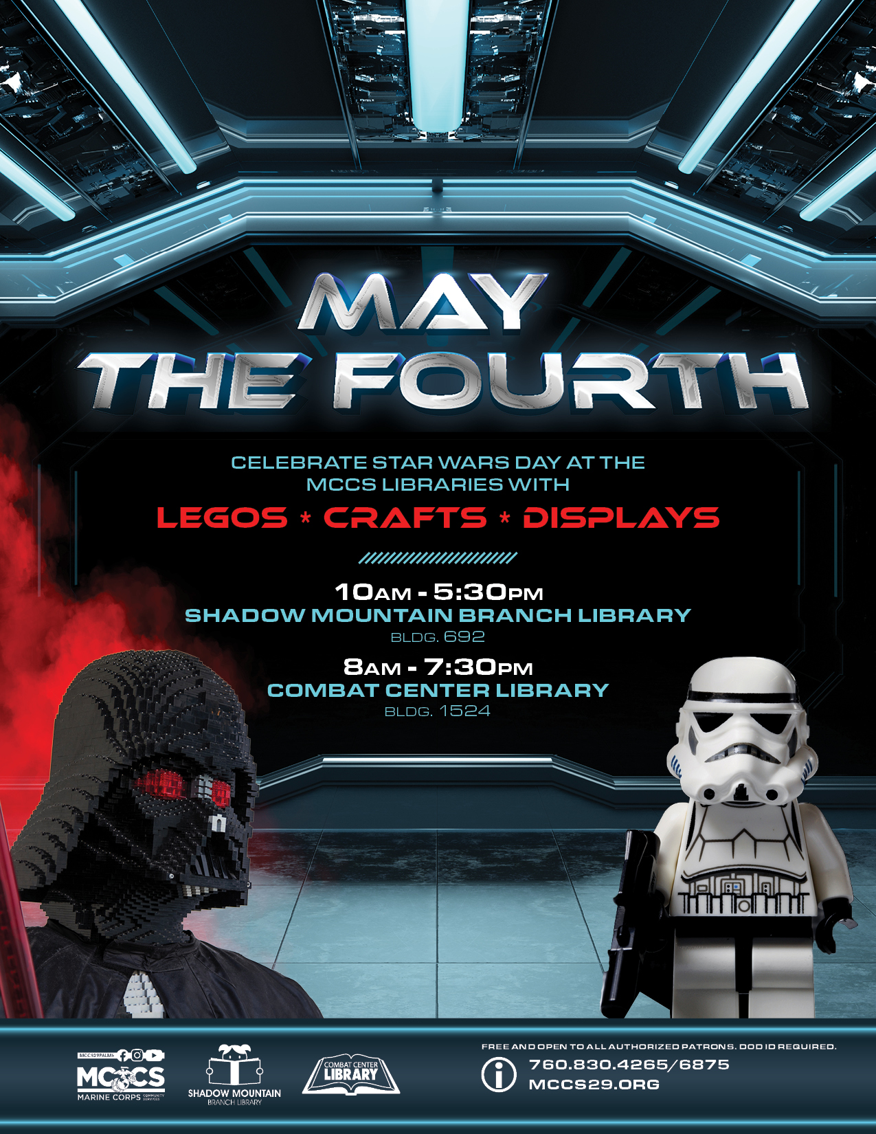 Celebrate Star Wars Day at the MCCS libraries with Legos, crafts and displays.
